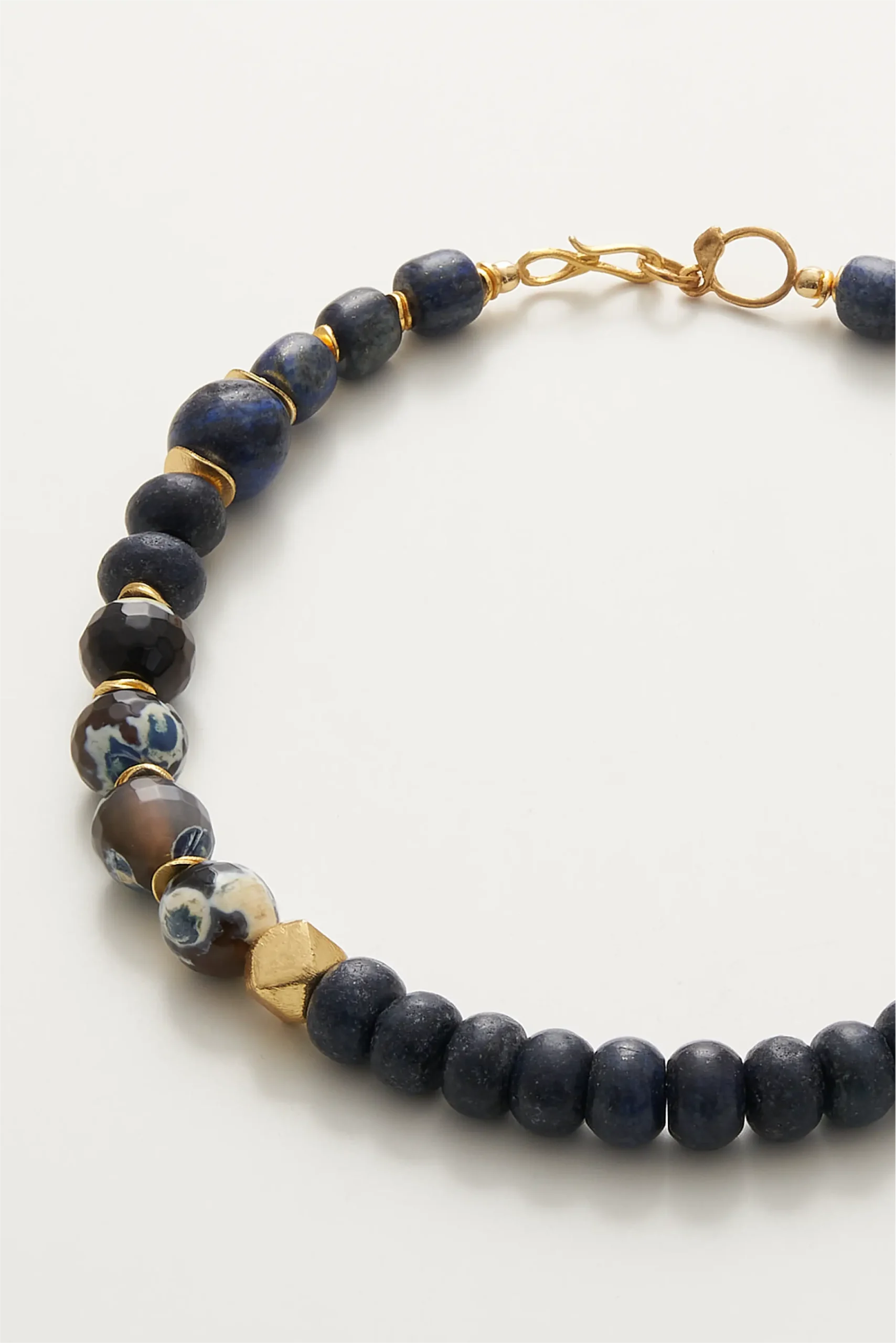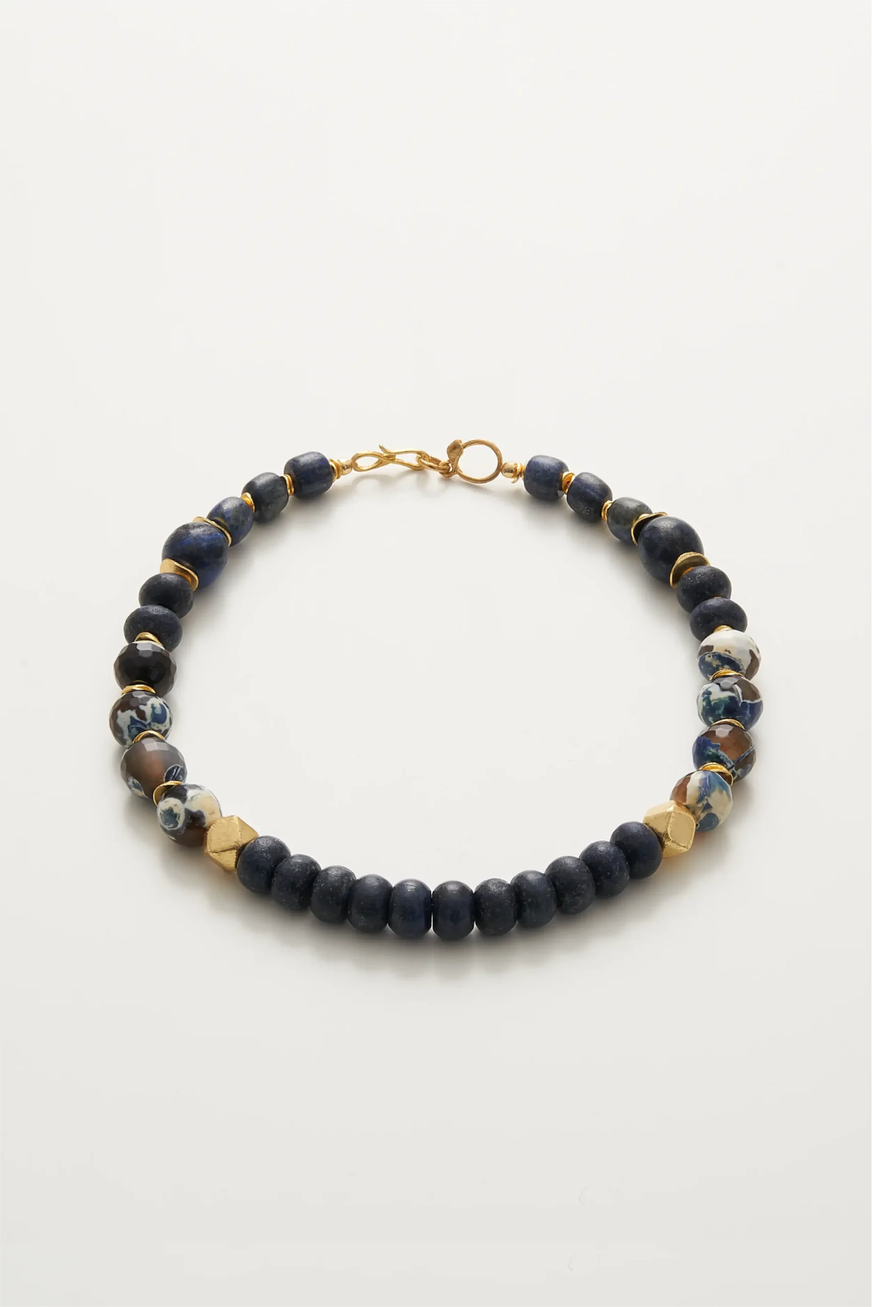 Akik ve Lapis doğal taşlarından üretilmiştir. Klips ve diğer materyaller, bronz üzerine altın kaplamadır.