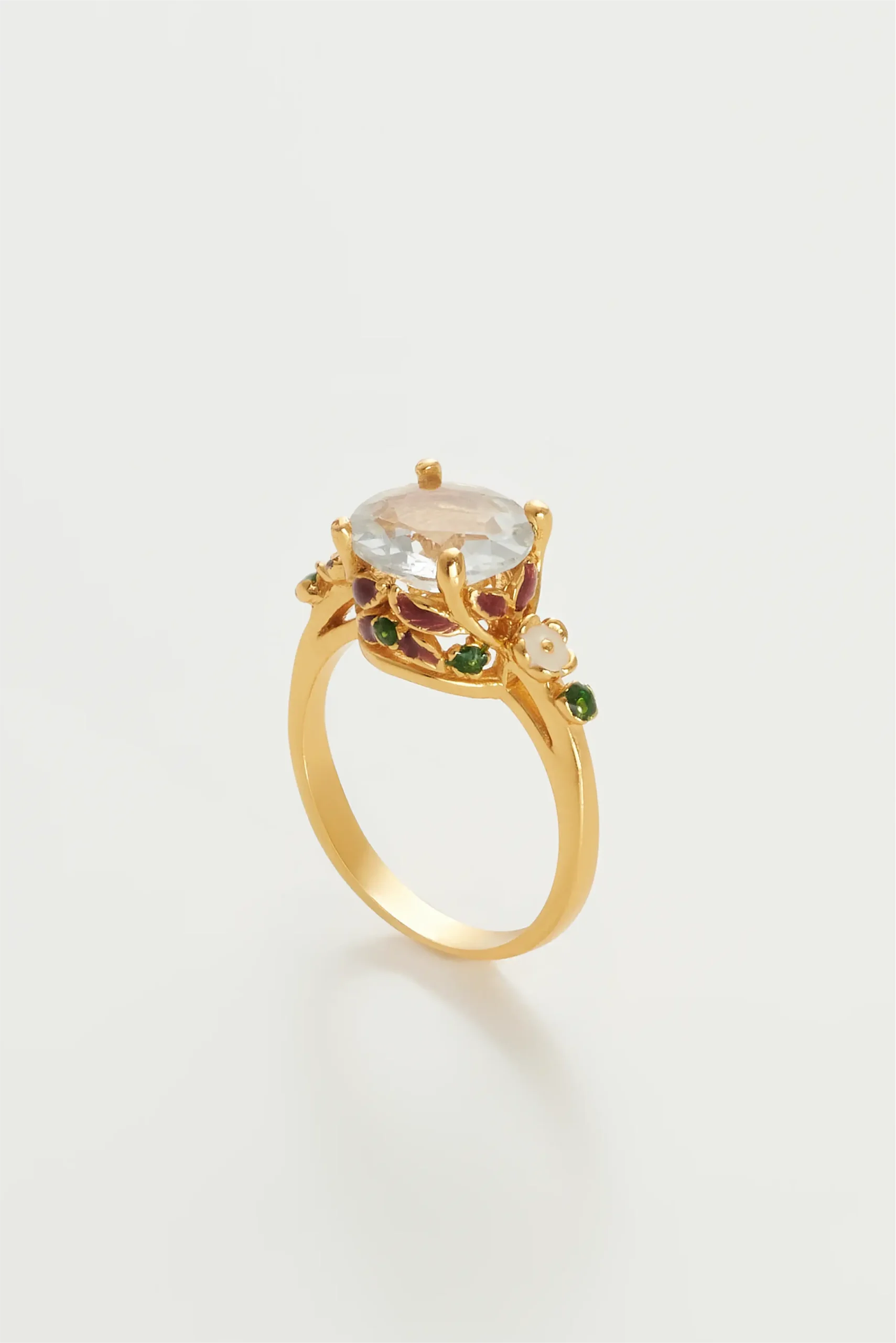925 ayar gümüş üzerine 22 ayar 3 mikron altın kaplama, mine (enamel) ve özenle seçilmiş doğal taşlarla üretilmiştir.