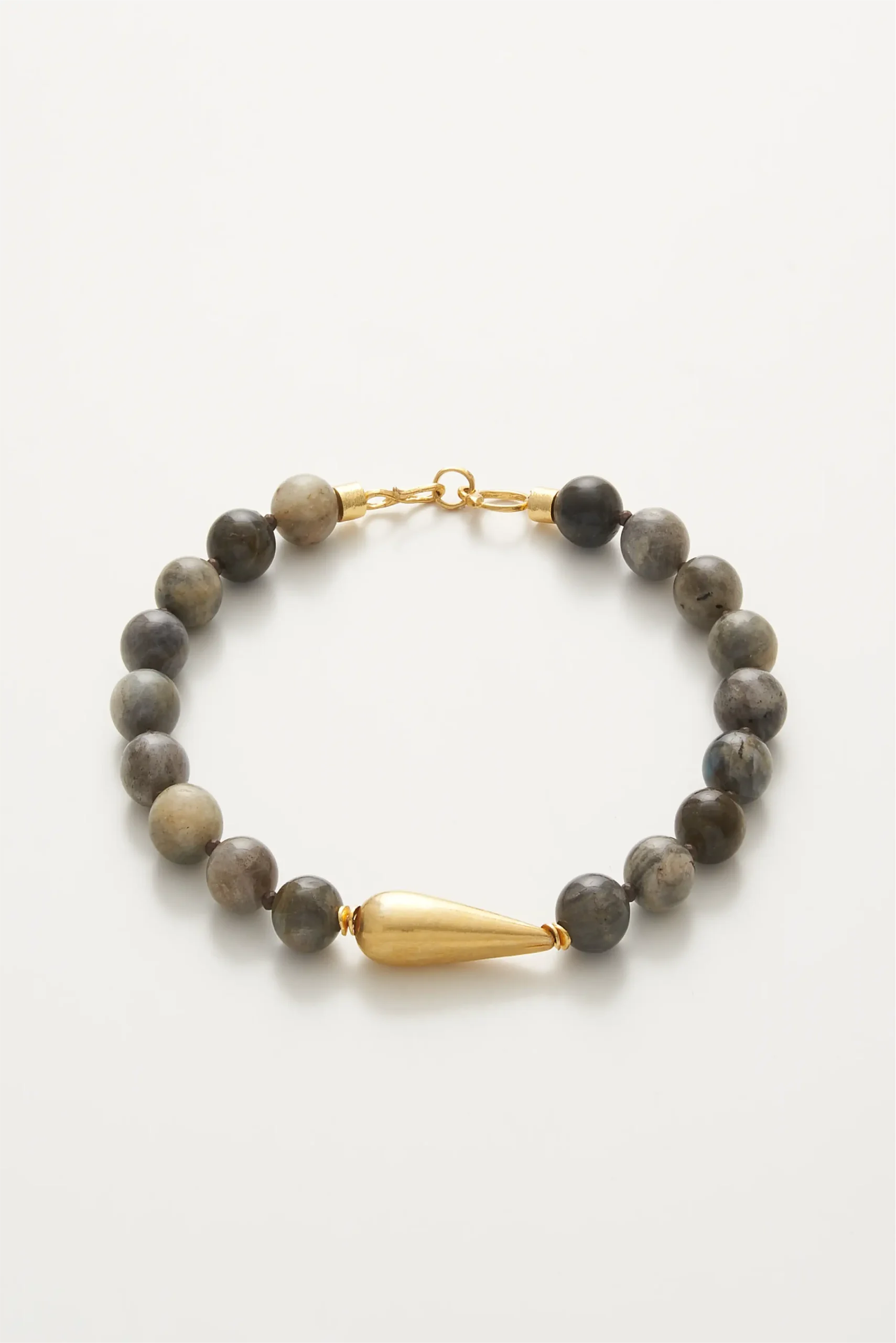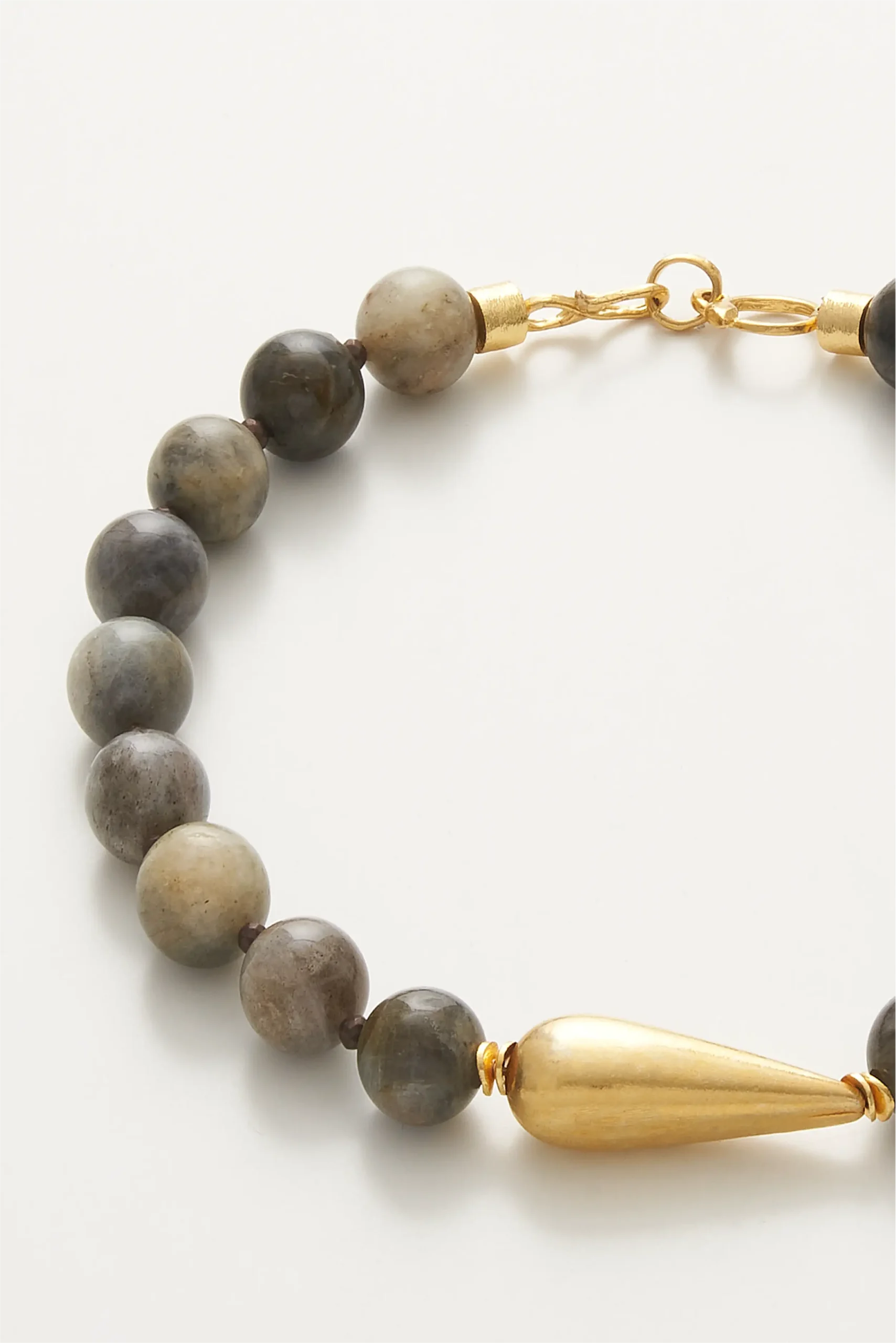 Labradorit doğal taşından üretilmiştir. Klips ve diğer materyaller, bronz üzerine altın kaplamadır.