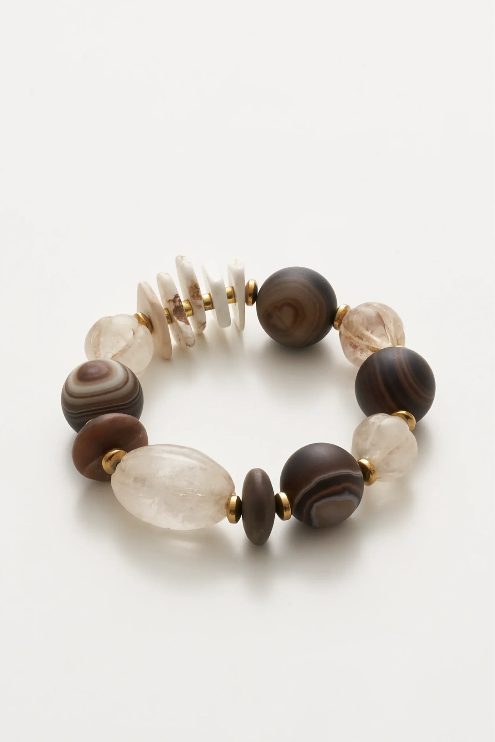Akik, Havlit, Necef ve Turkuaz doğal taşlarından üretilmiştir. Klips ve diğer materyaller, bronz üzerine altın kaplamadır.