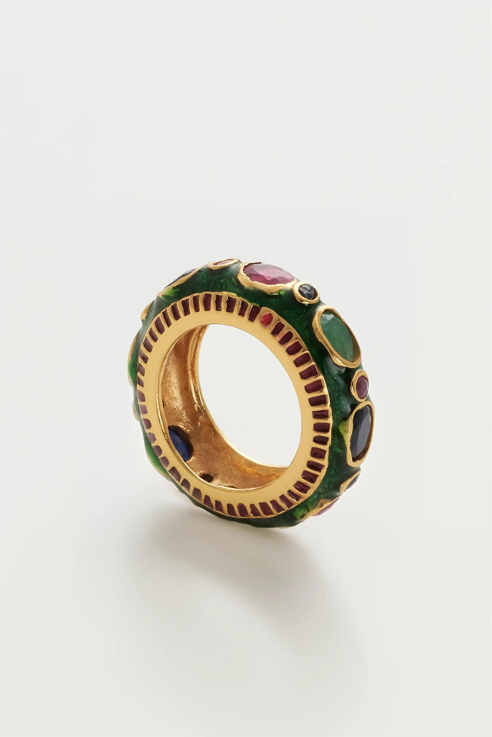 925 ayar gümüş üzerine 22 ayar 3 mikron altın kaplama, mine (enamel) ve özenle seçilmiş doğal taşlarla üretilmiştir.