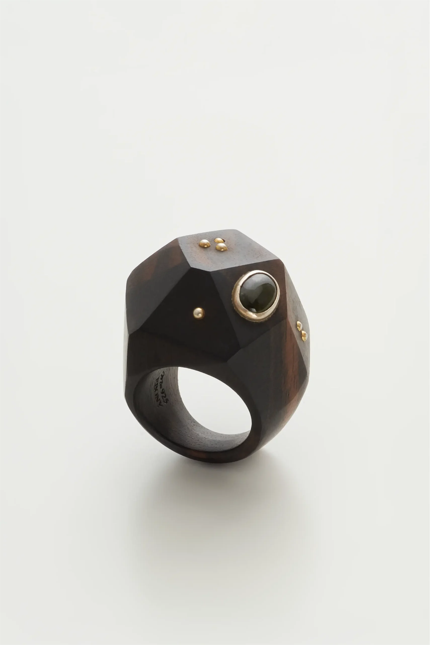 Abanozdan üretilmiştir. Diğer materyaller, bronz üzerine altın kaplamadır.