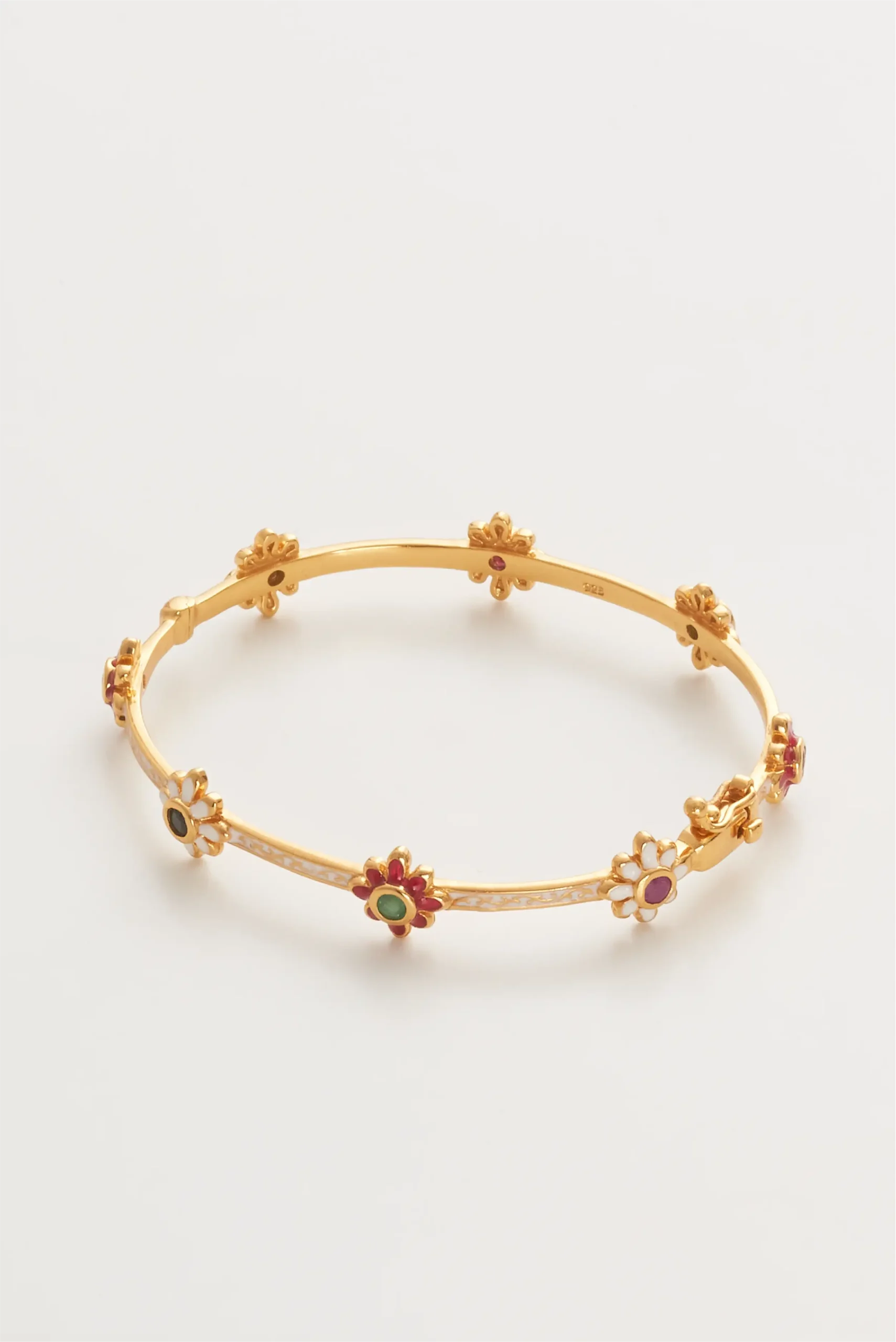 925 ayar gümüş üzerine 22 ayar 3 mikron altın kaplama, mine (enamel) ve özenle seçilmiş doğal taşlarla üretilmiştir.