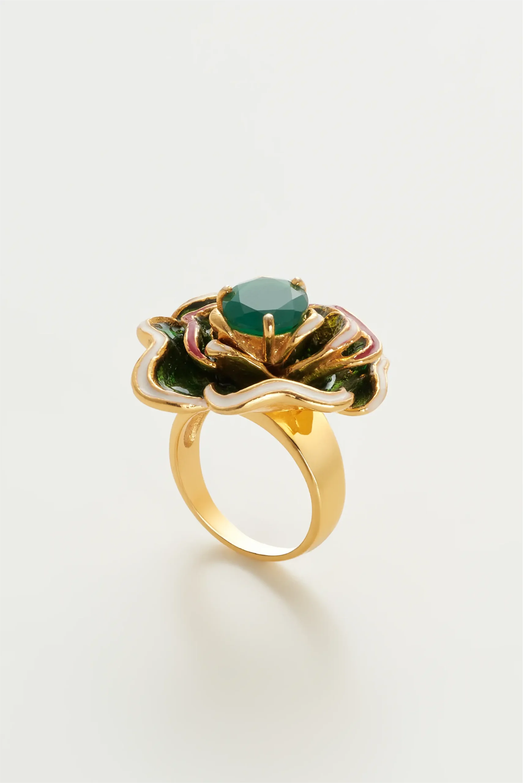 925 ayar gümüş üzerine 22 ayar 3 mikron altın kaplama, mine (enamel) ve özenle seçilmiş doğal taşlarla üretilmiştir.