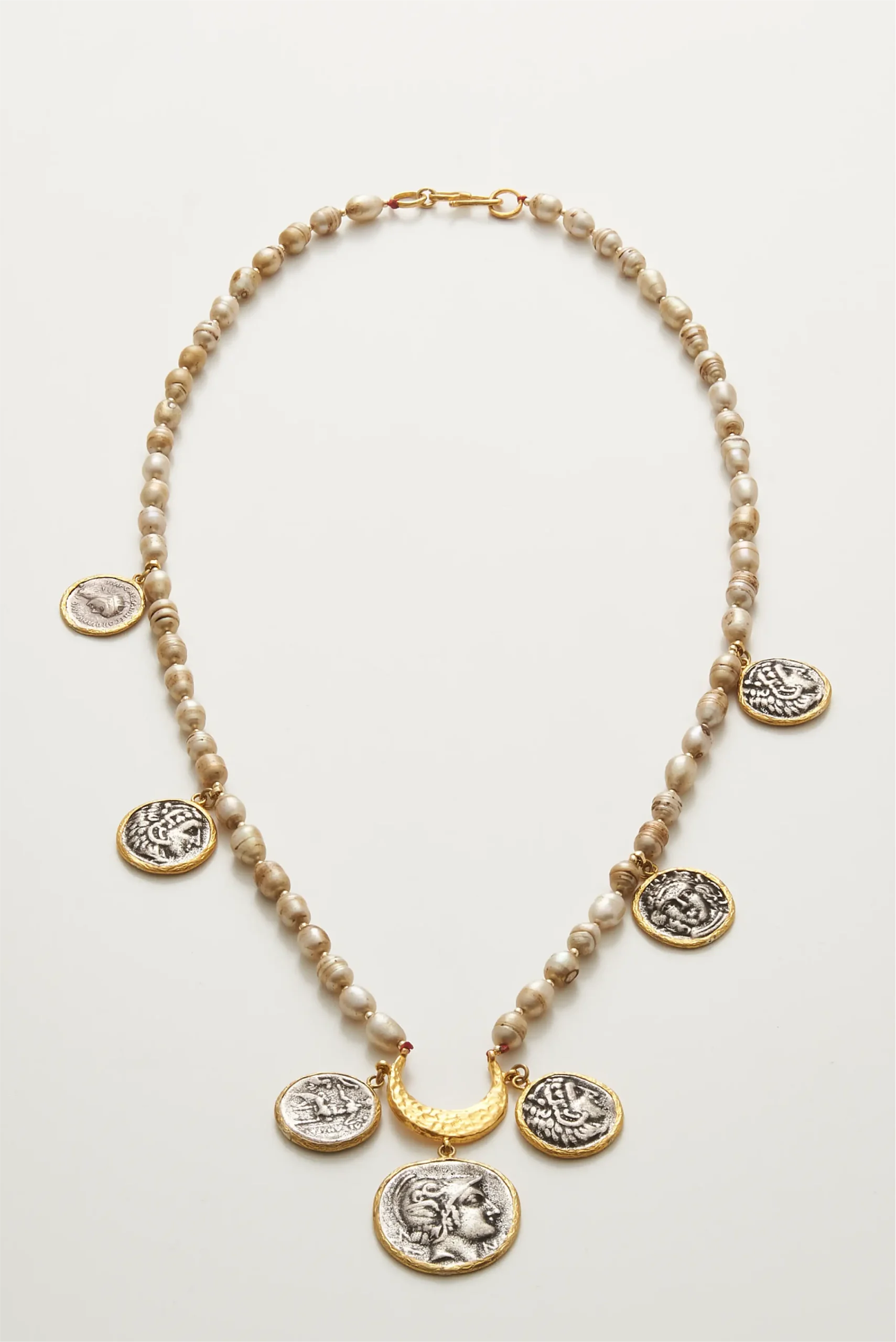 İnci doğal taşından üretilmiştir. Klips ve diğer materyaller, bronz üzerine altın kaplamadır.