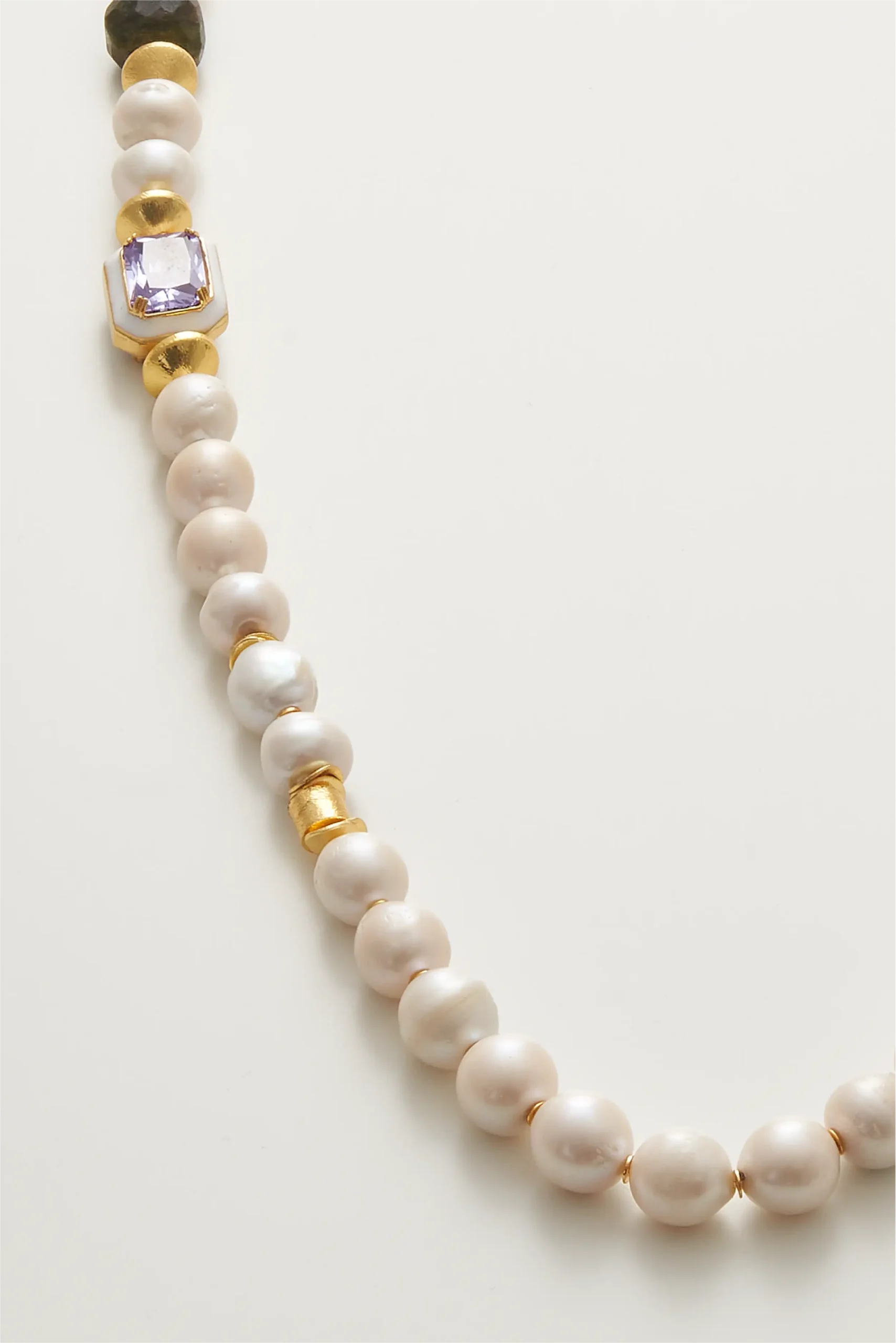 İnci, ametist ve turmalin doğal taşlarından üretilmiştir. Klips bronz üzerine altın kaplamadır.