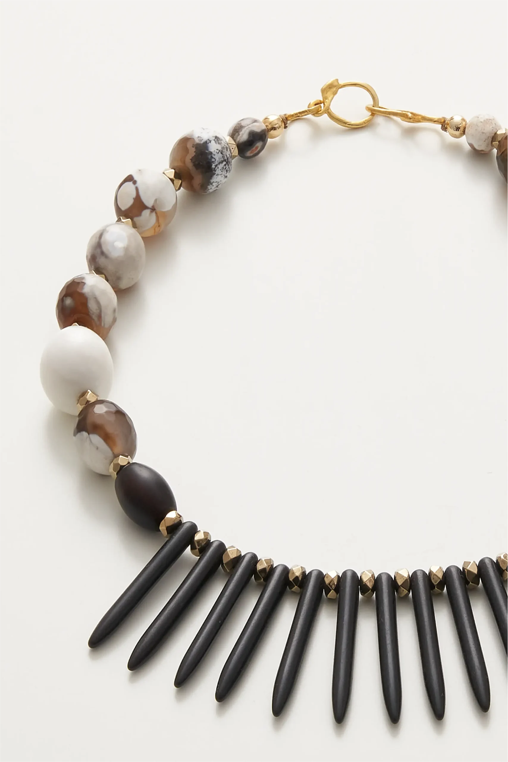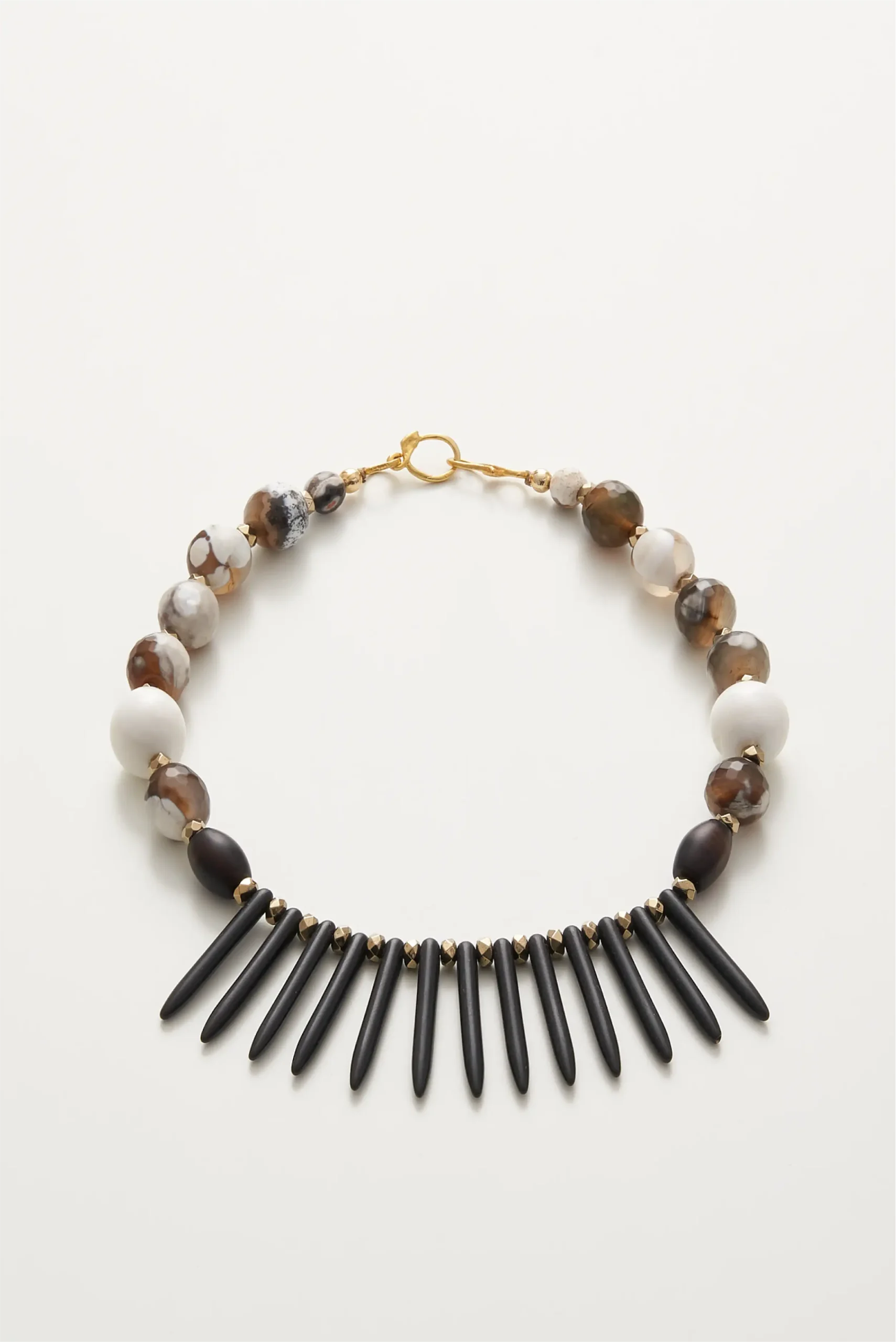 Akik, Beyaz Mercan, Turkuaz doğal taşlarından üretilmiştir. Klips ve diğer materyaller, bronz üzerine altın kaplamadır.