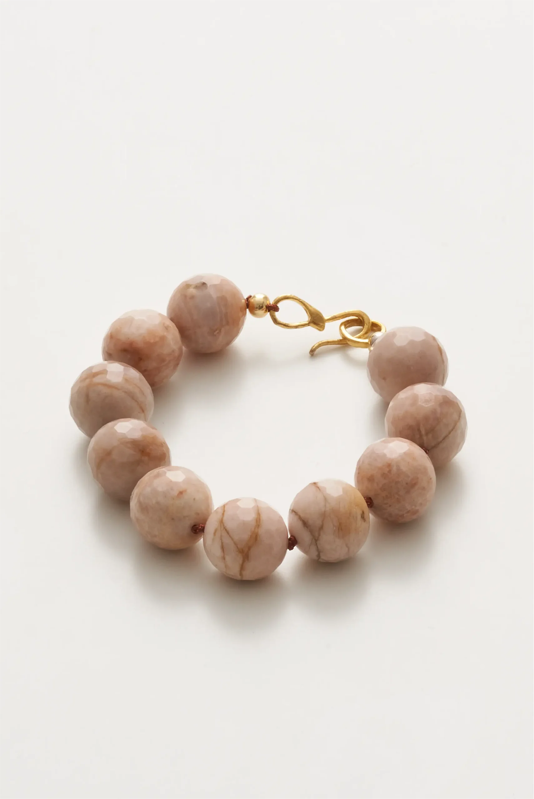 Güneş Taşı doğal taşından üretilmiştir. Klips ve diğer materyaller, bronz üzerine altın kaplamadır.